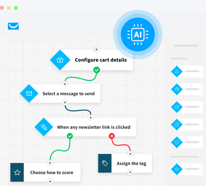 GetResponse provides a powerful visual automation builder with advanced workflows, conditional logic, loops, scoring, tagging, and AI-driven campaign suggestions. You can create complex customer journeys without limits.
