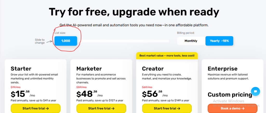 • Unlimited email sends on all paid plans — send as often as you want without overage fees or credits, ideal for frequent campaigns and growing lists.